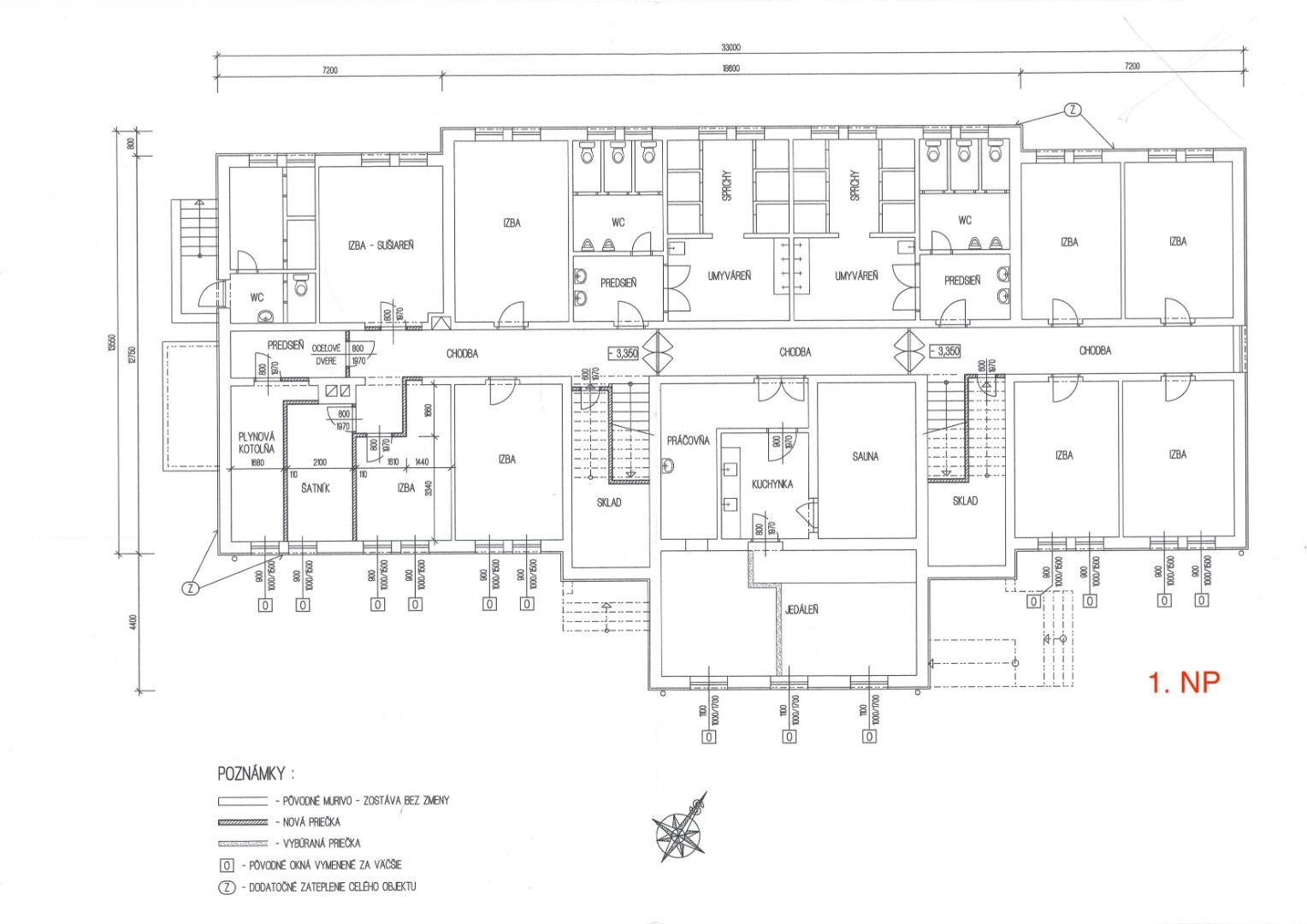 Tento ubytovací komplex má celkovú podlahovú plochu 910,64 m2, ktorá je rozdelená na dve podlažia.