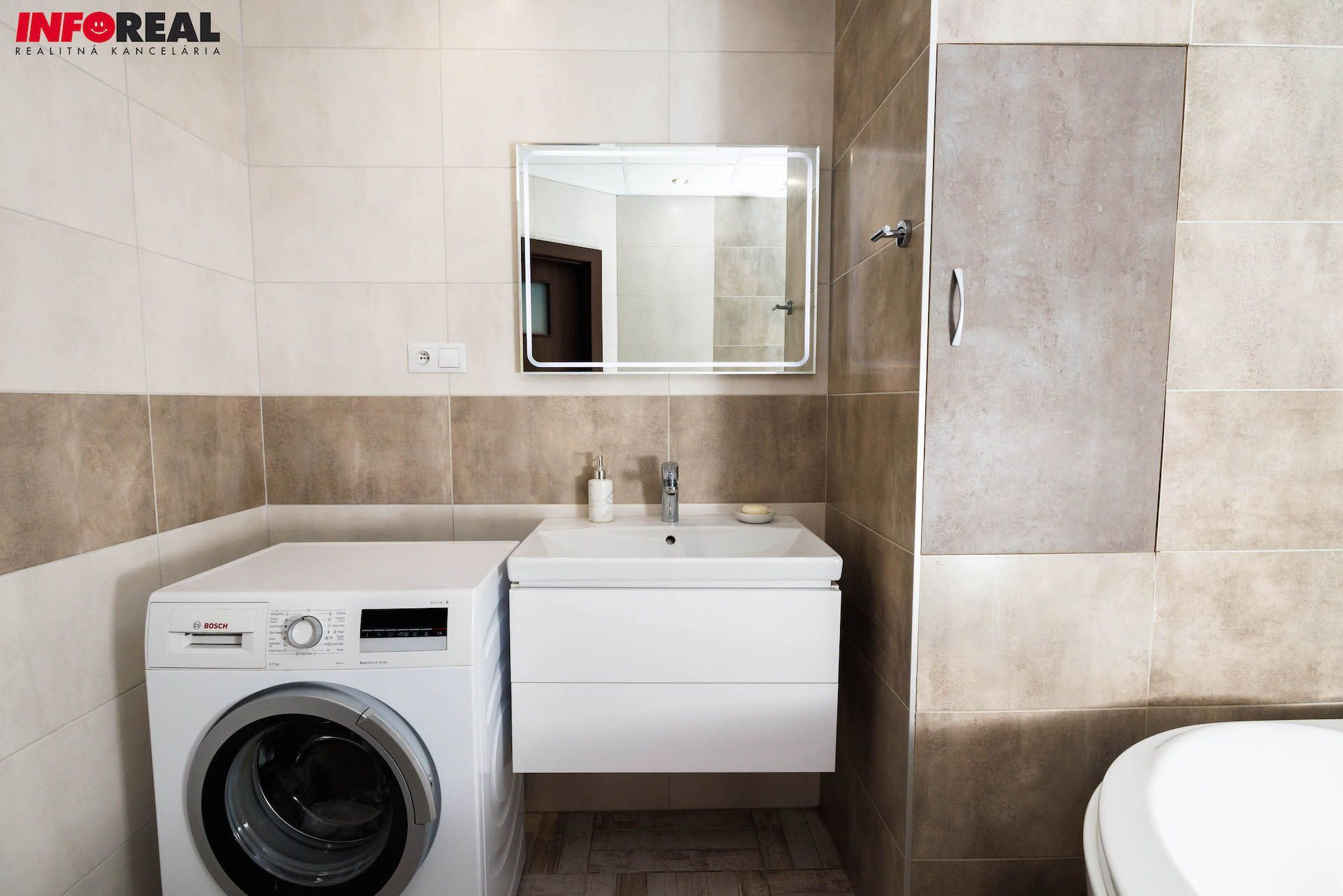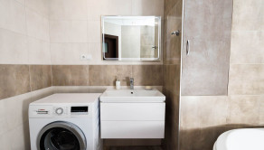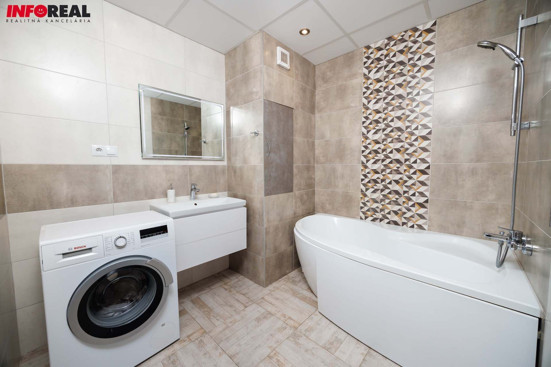 - Kúpelňa: kvalitné použité materiály v celej kúpelni z kúpelňového štúdia MB SANITAS, samostatné WC so záväsným systémom Geberit