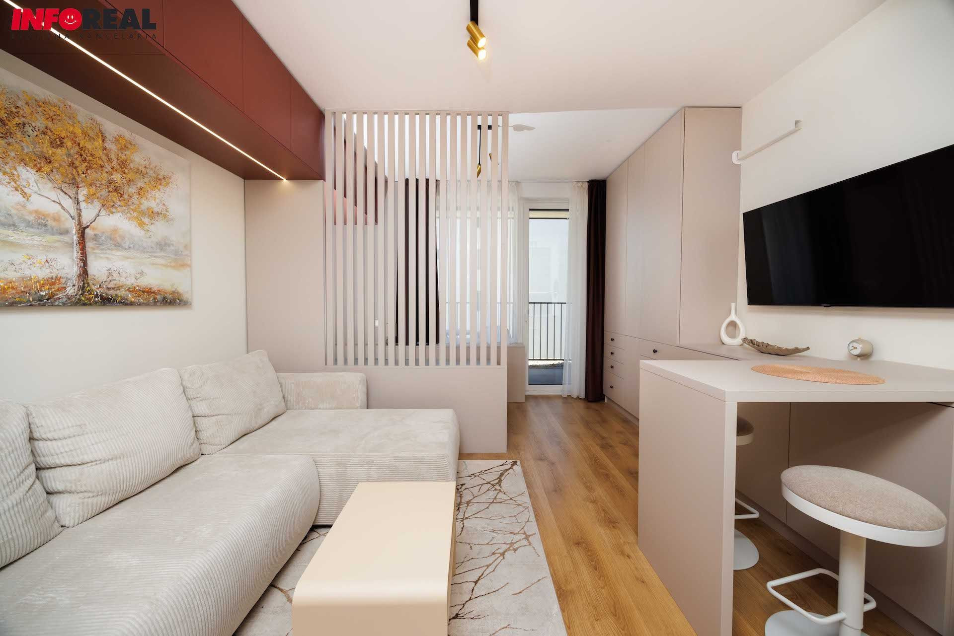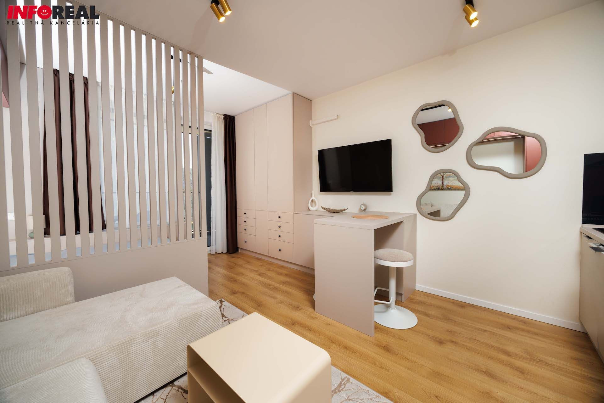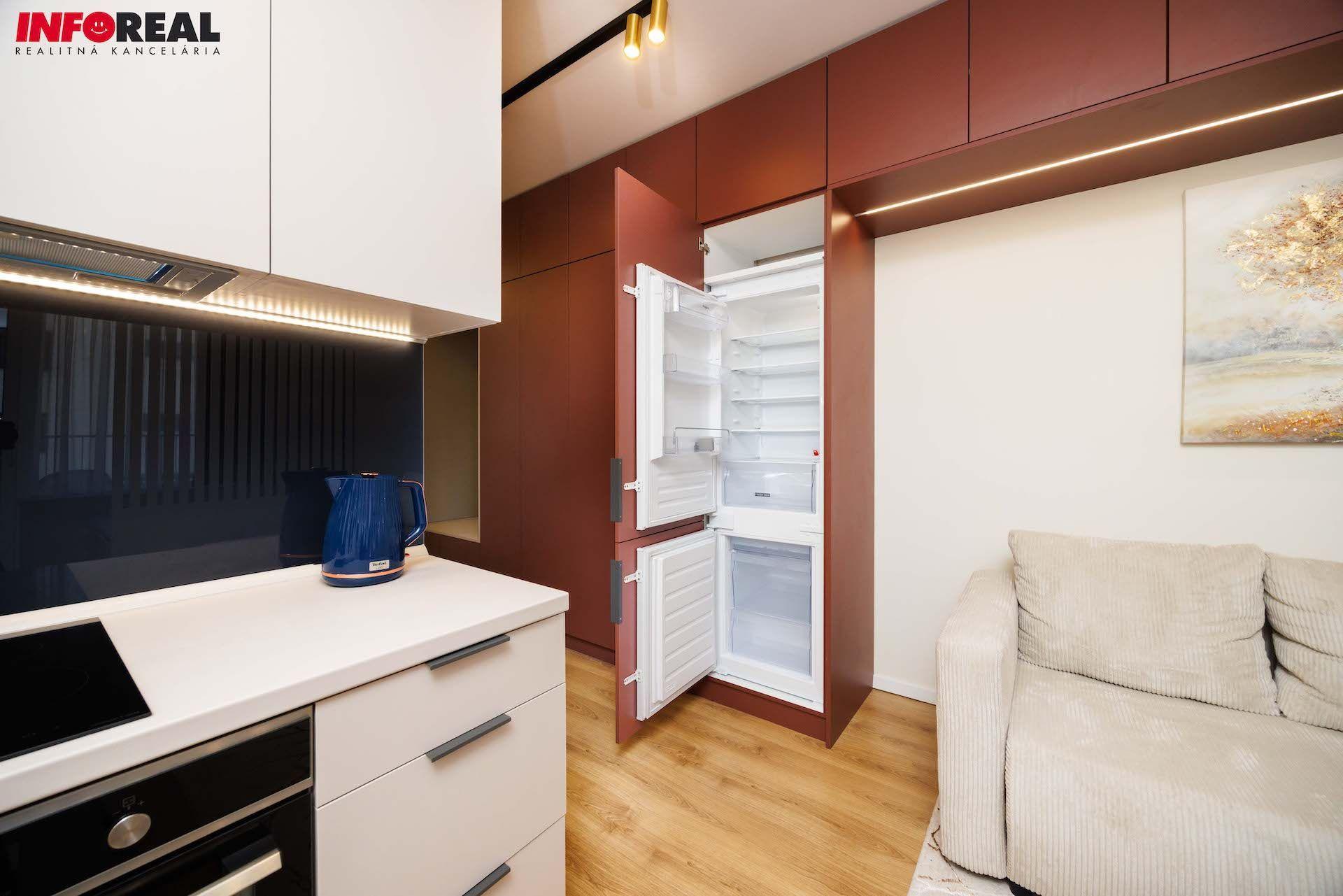 Ponúkame Vám na prenájom štýlový 1-izbový byt so spacím kútom a premysleným riešením úložných priestorov v novostavbe BYTY POPRADSKÁ, na obľúbenej adrese Popradská 3D, Košice – Terasa.