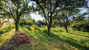 Na pozemku sú ovocné stromy – jablone a hrušky.