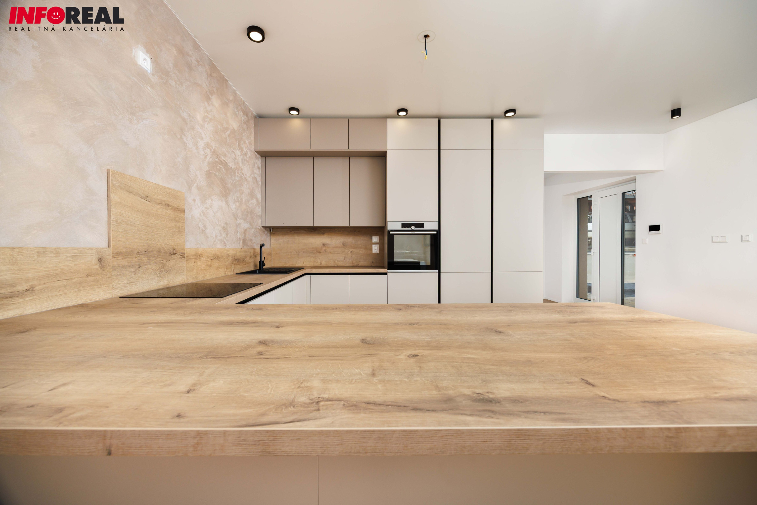 • Kuchyňa snov: Linka na mieru so zabudovanými spotrebičmi (elektrická rúra, plynová varná doska, umývačka riadu, chladnička s mrazničkou, digestor).